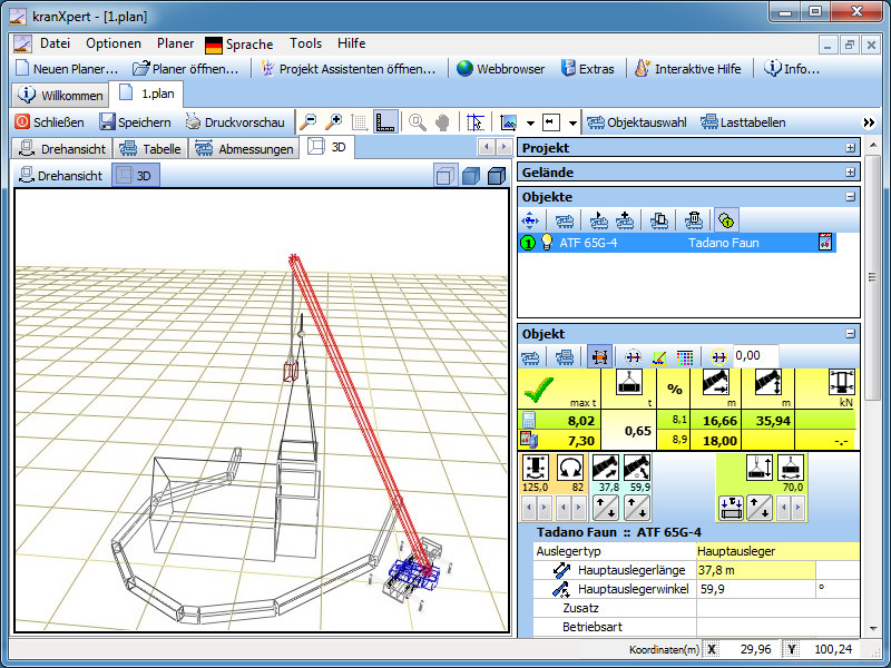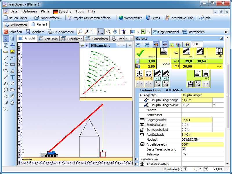 Kraneinsatzplanung am Zeichentisch und langes suchen in Kranlasttabellen gehören der Vergangenheit an.