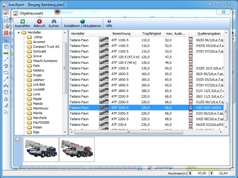Verfügbare Krane