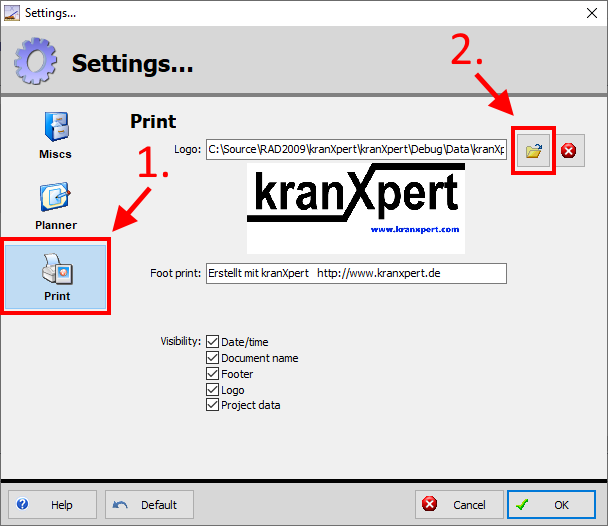 Switch to the page 'Print', here you can use the select picture button to choice your company logo.