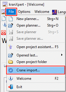 To import a crane or objects from a kranXpert import file follow the instructions:
