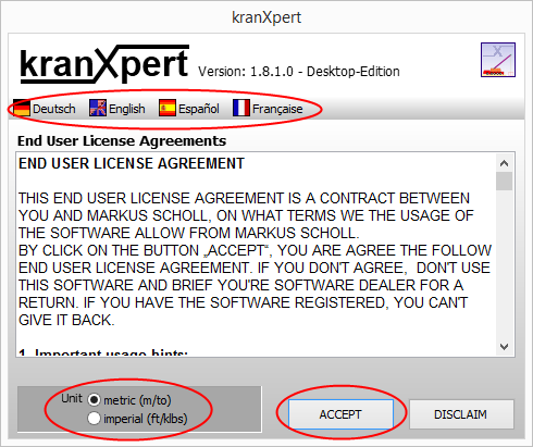 To activate the application for using please start kranXpert double click on the kranXpert desktop symbol.