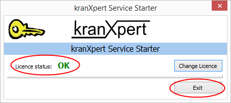 When the license status is OK then close the application.If the status failed click again the 'Change Licence' button and check your input.