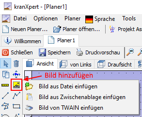 Öfnet den Windows Dateiauswahldialog wo Sie die Datei Öffnen können die Sie in den Planer einfügen möchten.Die unterstützten Bildformate sind jpg, png, bmp und gif und die unterstützten Vektorformate sind emf und wmf.