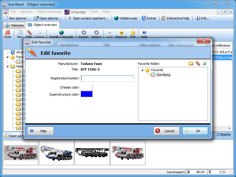 Overview of the kranXpert available cranes.
