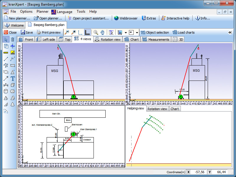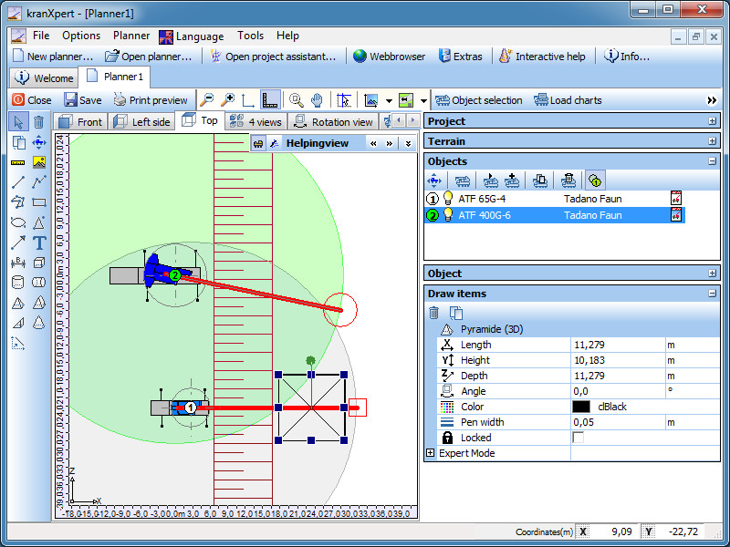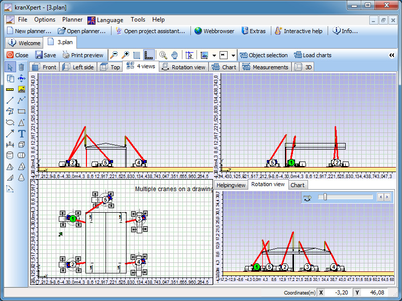 kranXpert provides familiar drawing tools that allow you to visualize crane lifts from various angles.