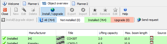 - In the Install/Upgrade function now you can filter the object list with not installed, installed or update availabel.