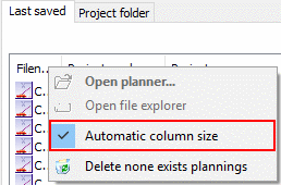 - In the welcome window added to the 'Last saved' project list a popup item 'Automatic column size'. When it is activated the colums act like befor. When you deactivate the entry it use and store your own column sizes.