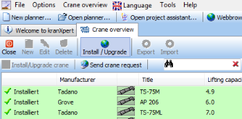 - This kranXpert version supports a better display for superstructure, couterweight and drivers cab. Now we must change the existing crane dimensions and later we make a database patch.